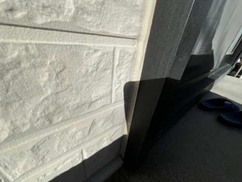 外壁の縦目地(目地部分)に使用されているシーリング材が劣化している様子が見られました。シーリング材は外壁同士の接合部に使用され、隙間を埋める役割を果たします。劣化すると水分が内部に浸透し、建物にダメージを与える原因となります。