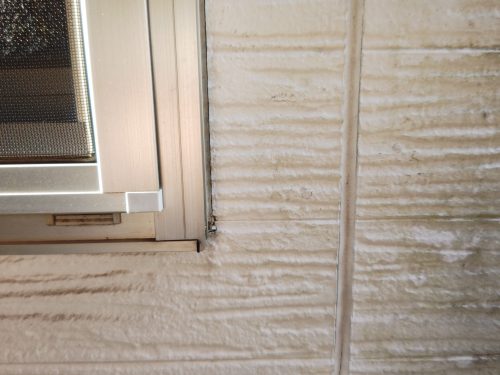 特に白色や淡い色の外壁では色褪せが目立ちにくいため、劣化に気付きにくいことが多いですが、実際に指で確認したところ、粉が付着していることが分かりました。 これは、塗膜が劣化し、防水機能が低下しているサインです。