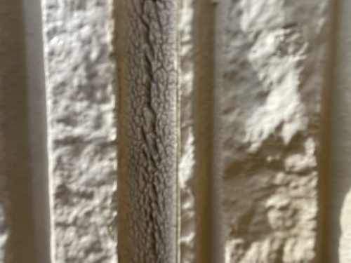 サイディングは耐久性が高く、デザイン性にも優れていますが、定期的なメンテナンスが必要な建材です。特にシーリング部分の劣化が進行しており、ひび割れや硬化が見られました。シーリングの劣化を放置すると、そこから雨水が侵入し、内部の木材を傷める原因となるため、早めの補修が必要です。