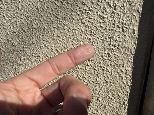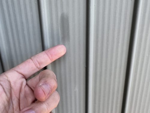 お客様のお宅の外壁を確認すると、モルタル壁にひび割れやチョーキングが見られ、トタン壁にもチョーキングが発生していました。外壁塗装は建物の美観を保つだけでなく、建物自体を守るためにも非常に重要です。チョーキングは塗装が劣化しているサインで、早急に対処しなければ、雨水の浸入や内部構造への影響を引き起こしかねません。