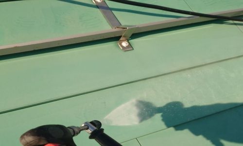 外壁と屋根の表面に付着した汚れなどを徹底的に洗い流しました。塗装の密着性を高めるためには、この作業がとても重要です。