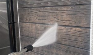 外壁には長年の汚れケなどが付着しているため、高圧洗浄によってしっかりと洗い流します。これにより、塗料の密着力が向上し、長持ちする塗膜を形成することができます。