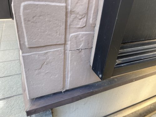 サイディングボードのつなぎ目に充填されているシーリング(コーキング)が硬化し、ひび割れや破断が見られました。シーリングが劣化すると、隙間から雨水が浸入し、外壁の内部腐食につながる可能性があります。