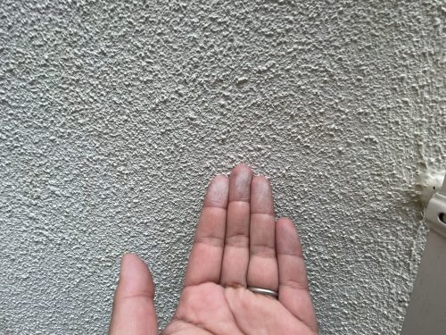 手で外壁を触ると白い粉が付く現象で、塗膜が劣化しているサインです。防水性の低下により、外壁内部への水の侵入リスクが高まります。