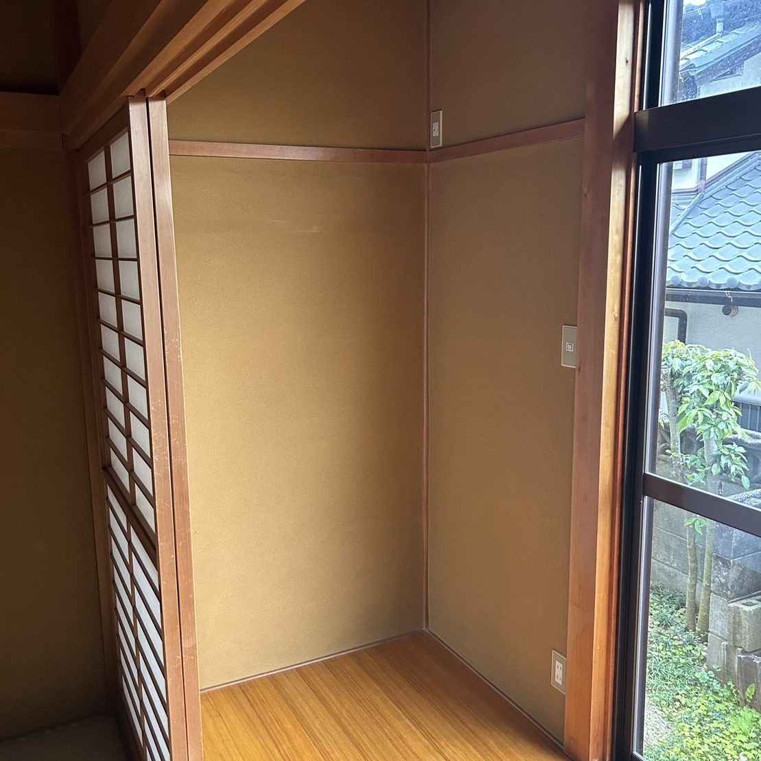 もともとのお部屋は、8畳の畳敷きに床の間・仏壇スペースがある純和風のお部屋。さらに南面にはお庭に面した縁側(収納付き)もあり、日当たりも抜群。ただ、実際には来客も少なく、ほとんど使われていない状態だったとのことです。