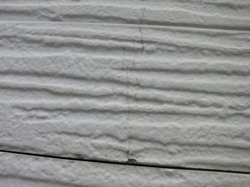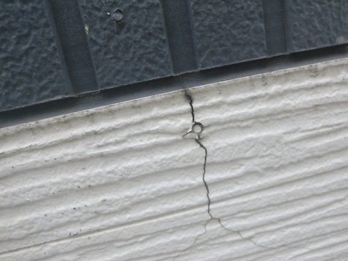 サイディング外壁の目地部分にあるシーリング材に亀裂が発生しており、弾力性が失われていました。外壁塗装と同時にシーリングの打ち替えが必要なタイミングです。