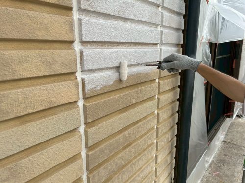 下塗り:下塗り材で密着性を高め、上塗り塗料の性能を最大限に引き出します。