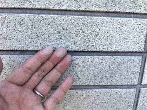 外壁を手で触ると白い粉が付く状態で、塗膜の劣化を示すサインです。防水性能が低下し、このまま放置すると外壁材自体が水分を吸収して傷みやすくなります。