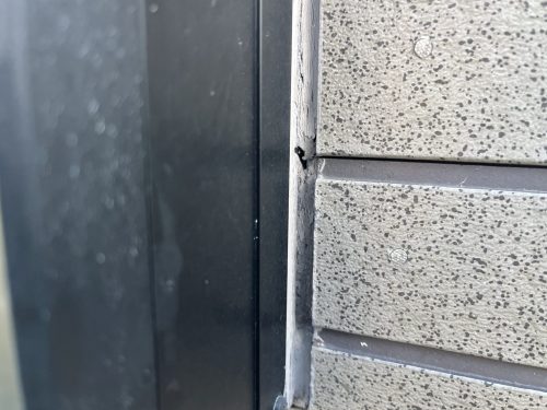 サイディングの継ぎ目部分に充填されているシーリング材がひび割れや痩せを起こしていました。シーリングは雨水の侵入を防ぐ重要な部分なので、早めの打ち替えが必要です。