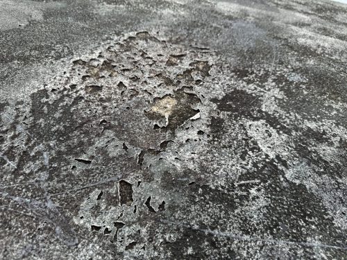 外壁塗装の調査と合わせて屋根の点検も行いました。その結果、屋根についても防水性能が低下しており、防水工事が必要な状態でした。特に築50年以上の建物では、屋根からの雨漏りリスクが高まるため、外壁塗装と同時に屋根のメンテナンスを行うことが望ましいといえます。
