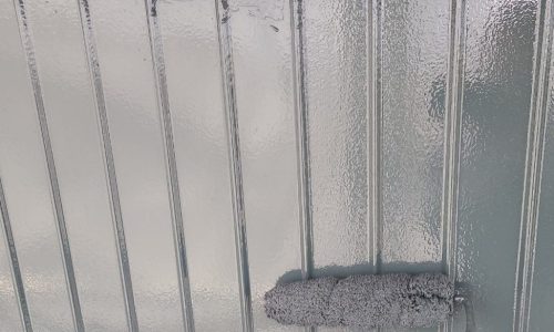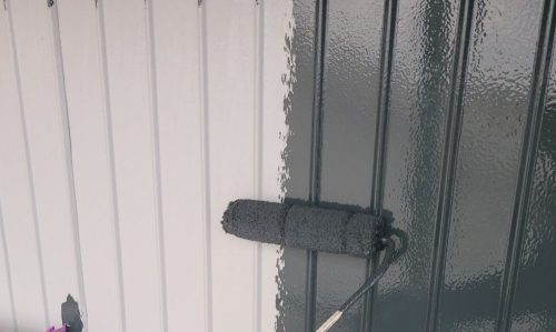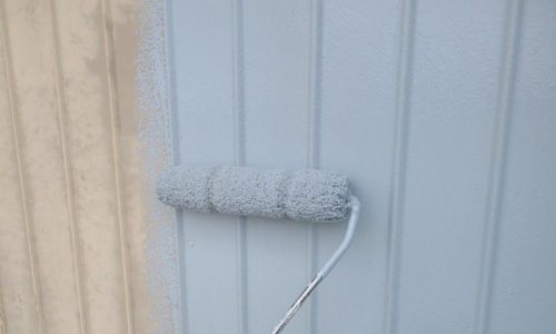 シーリング完了後は、いよいよ外壁塗装です。モルタル壁には下塗り材をしっかりと塗布し、細かなクラックを埋めながら塗料の密着性を高めました。トタン壁には錆止めを下塗りに使用し、腐食の進行を防ぎつつ美しい仕上がりを目指しました。その後、中塗り・上塗りと重ねることで、見た目の美しさだけでなく、耐久性・防水性を兼ね備えた外壁に生まれ変わりました。