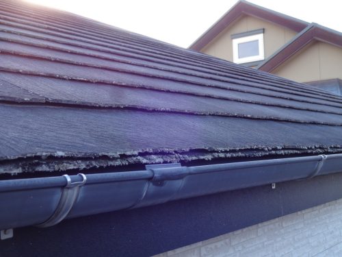 特に北面や日当たりの悪い部分にはコケやカビが繁殖しており、美観の低下だけでなく、屋根材そのものの劣化を進行させるリスクがあります。築22年という年数を考えると、外壁塗装だけでなく屋根のメンテナンスも同時に行うことで、建物全体の耐久性を高めることができます。