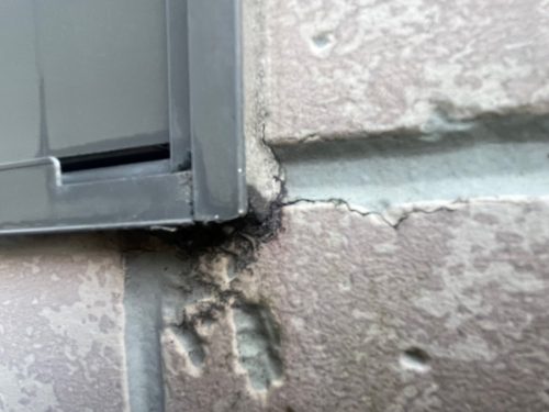シーリングは外壁材の隙間を埋め、雨水の侵入を防ぐ重要な役割を果たしていますが、劣化すると防水性が一気に低下してしまいます。さらに、サッシ周辺の外壁には小さなひび割れも確認できました。
