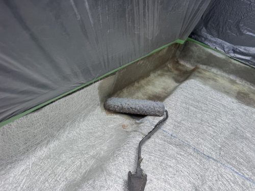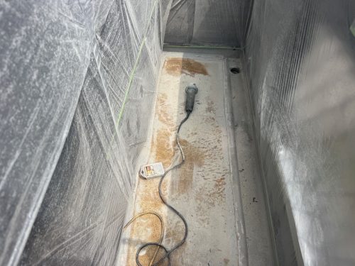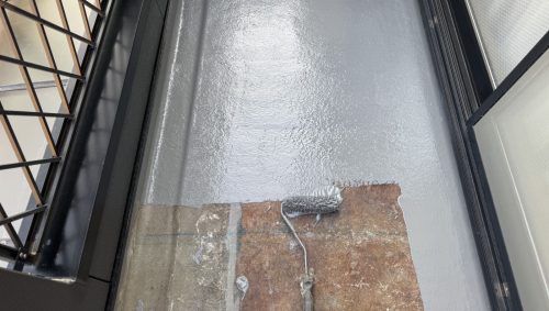 ベランダ部分の防水工事にはFRP防水を採用しました。FRP防水は耐久性と防水性に優れており、ひび割れや雨漏りを防ぐために効果的です。