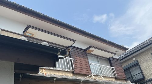 庇裏の剥がれ(一部塗膜が剥離している部分)