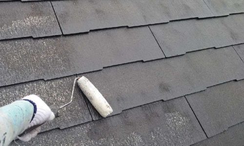 屋根塗装には「快適サーモSi」を施工。快適サーモSiは遮熱効果に優れており、屋根からの熱の侵入を抑える効果が期待できる塗料です。
