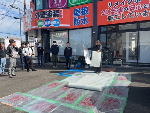 先日、リメイクホーム名古屋東店にて、FRP防水の講習会を行いました。今回の講習は、実際に現場で施工を行う職人さん、そしてお客様へ正しいご説明ができるようにするための知識向上を目的として行っています。