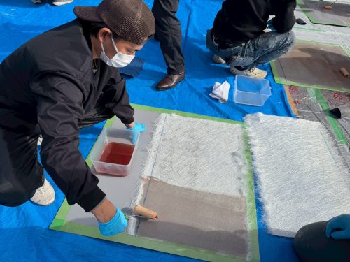 ひとつひとつの作業の意味や、注意点、天候による施工方法の違いなど、実践を交えながら確認し、職人さんたちも実際に手を動かしながら技術を習得しました。