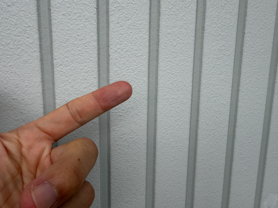 外壁を手で触れてみると、白い粉が指に付着するチョーキング現象が確認できました。