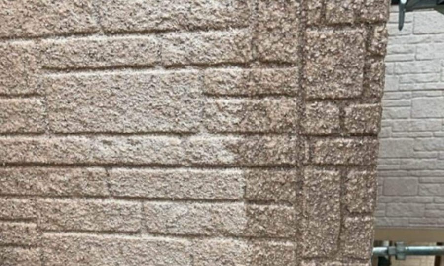 こちらのお宅は、前回の塗り替え時にセラミック塗料で施工されており、外壁のデザイン性や質感をとても大切にされていました。