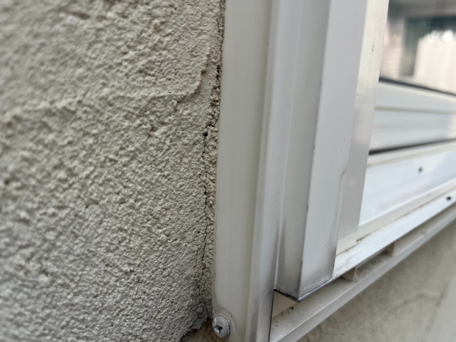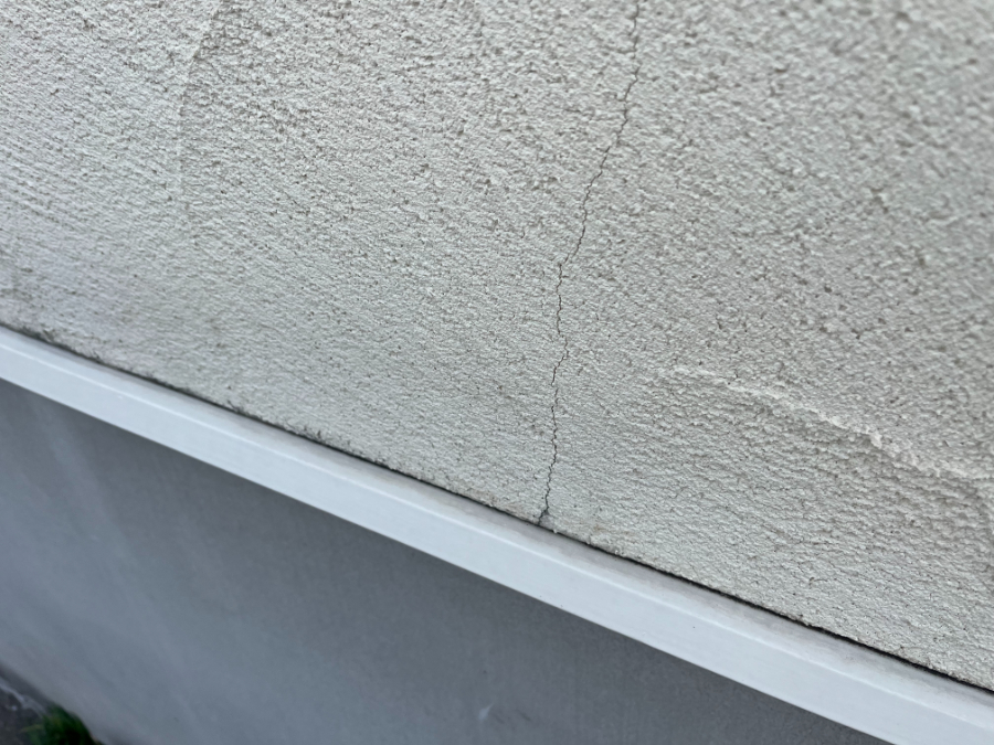 ジョリパット外壁特有の、細かなひび割れが複数箇所で見受けられました。一見すると軽微なひび割れでも、放置してしまうと雨水が内部に侵入し、下地の劣化につながる恐れがあります。外壁塗装をご検討される際は、こうした初期症状の段階での対応が非常に重要です。