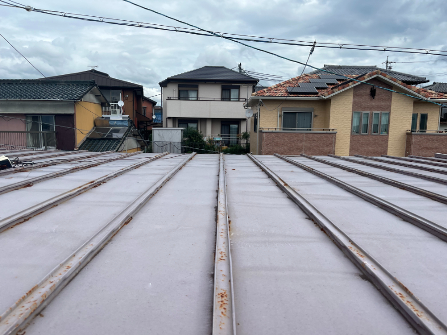 調査を行ったところ、屋根は折半屋根で、全体的に赤錆(あかさび)の発生が確認できました。