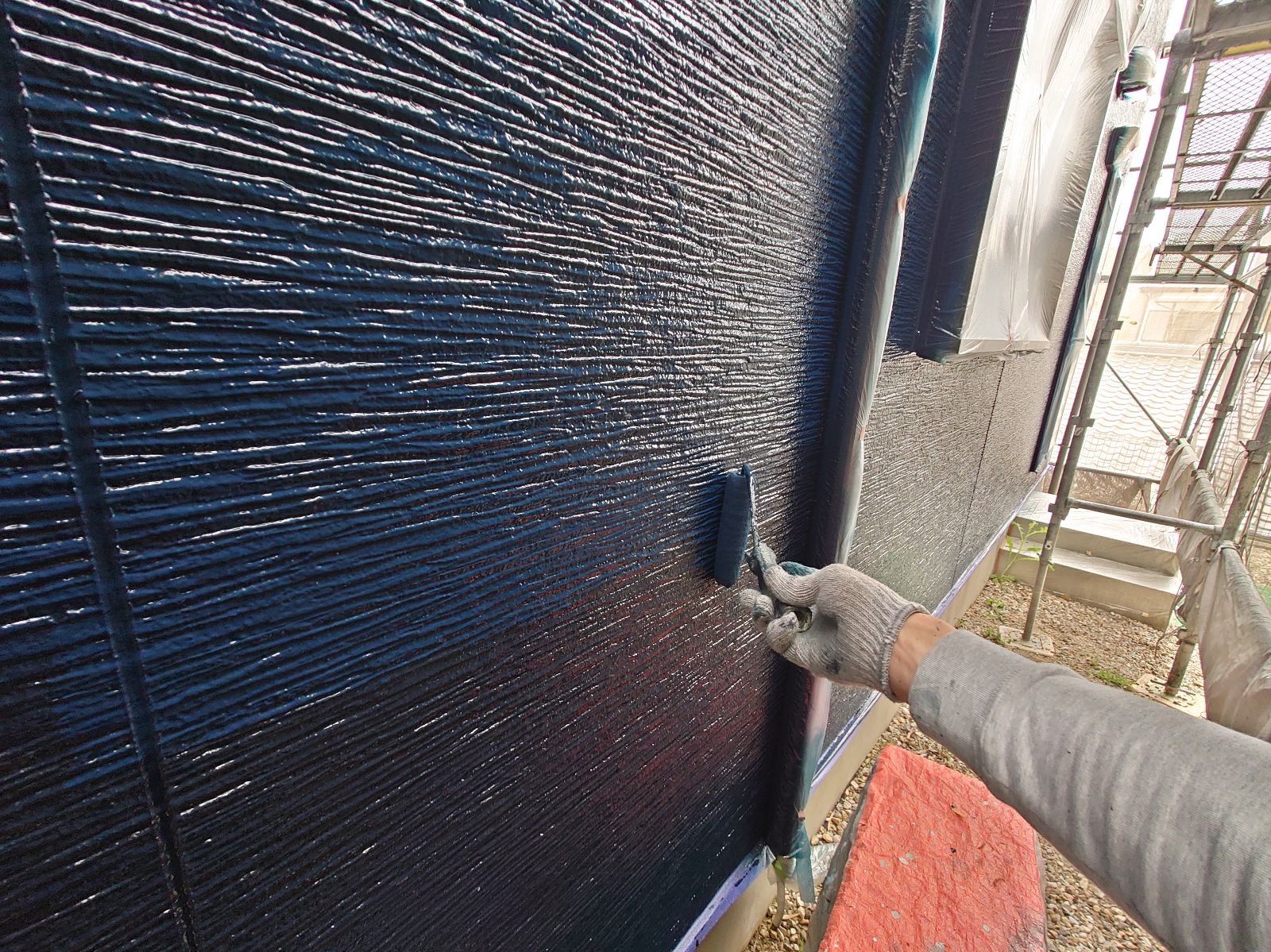 外壁塗装では、下塗り・中塗り・上塗り2回の4回塗りを実施。4回塗り(下塗り+中塗り+上塗り2回)で、仕上がりの美しさと耐久性を高めました。