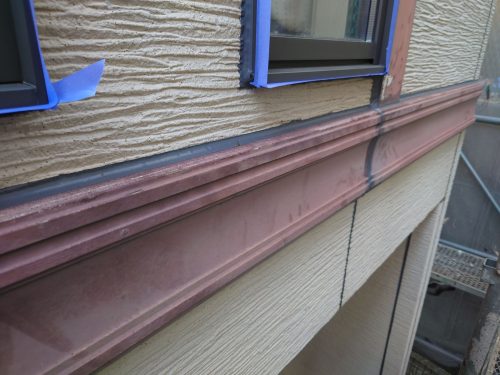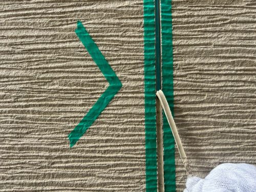 まずは既存のシーリングを撤去し、新しいシーリング材を充填しました。外壁の継ぎ目からの雨水侵入を防ぐために、シーリング処理はとても重要な工程です。