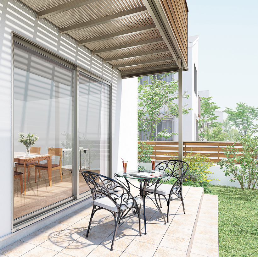 暗くなりがちなバルコニーの下もバルコニーの床面をスリットにすることで、新鮮な空気を循環させ、陽光を階下に届けることができます。