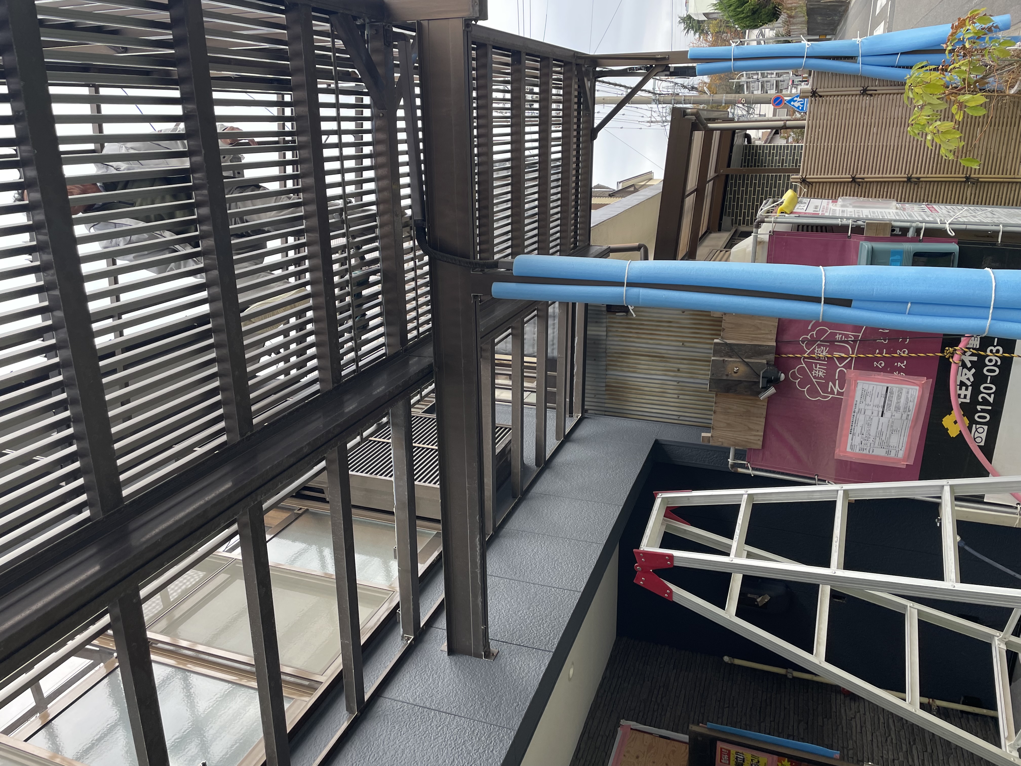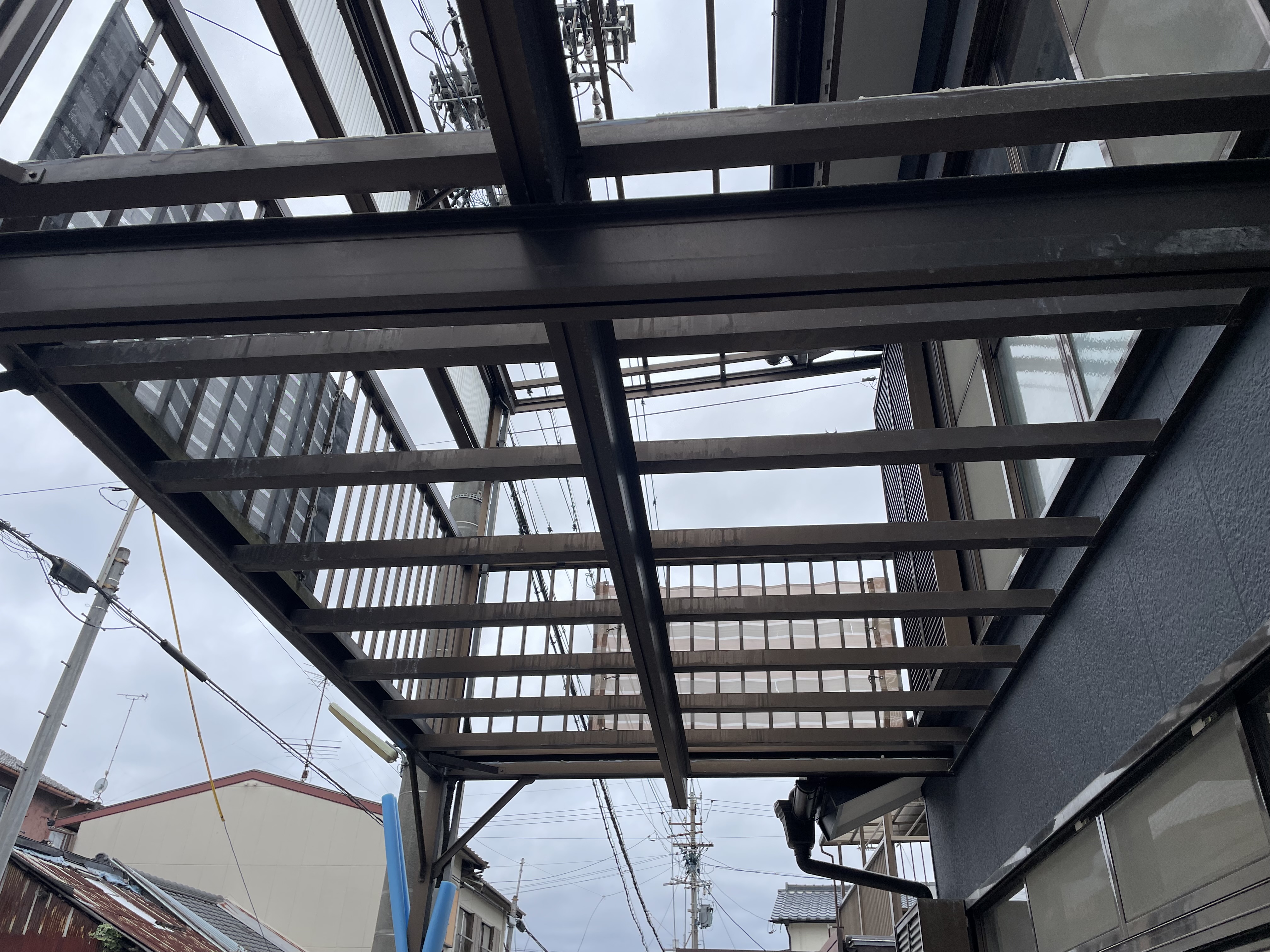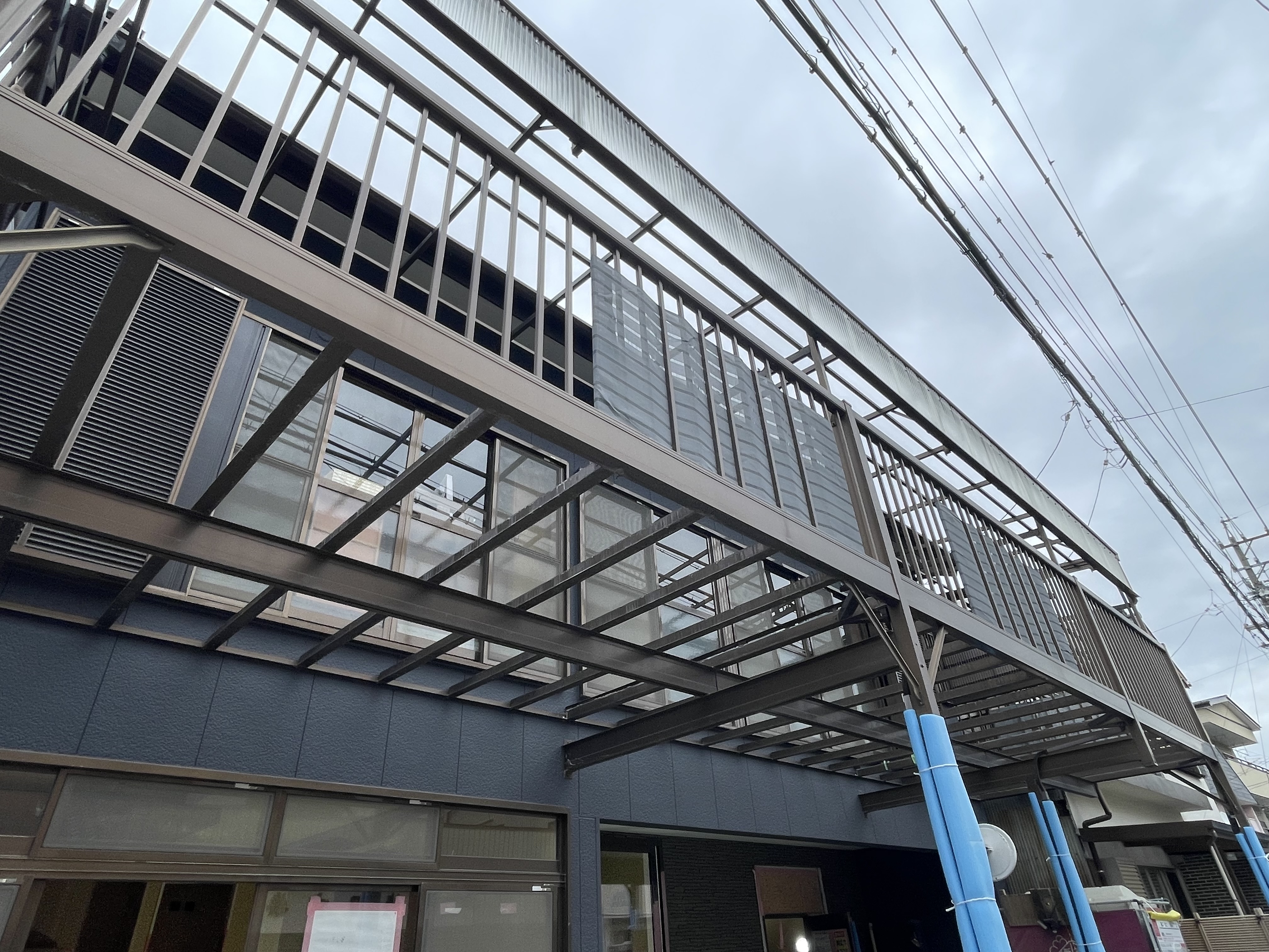 取り付けていた、塩ビの床材が撤去され、波板も撤去されました。