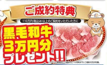 110万円(税込み)以上のご契約をいただいた方に 黒毛和牛3万円分 プレゼント♪♪