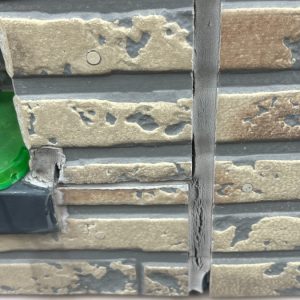 また、目地付近や一部の外壁材には細かなヒビ割れ(ヘアクラック)も確認できました。現時点では大きな構造クラックではありませんが、このまま放置すると雨水の侵入につながり、内部の劣化を招く恐れがあります。
