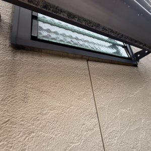 外壁材の継ぎ目やサッシ周りのシーリング(コーキング)を確認すると、硬化が進み、隙間が空いている箇所が複数見受けられました。