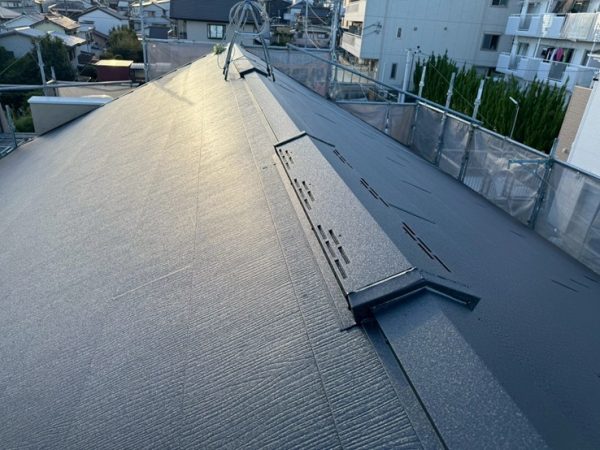 新しい屋根材を施工したことで、屋根の印象は大きく変わり、重厚感のある美しい仕上がりとなりました。