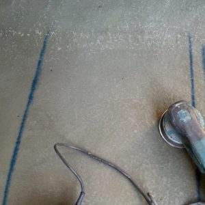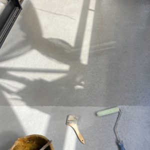 FRP防水層がしっかり硬化した後、トップコートを塗布する前にも再度サンディング作業を行います。