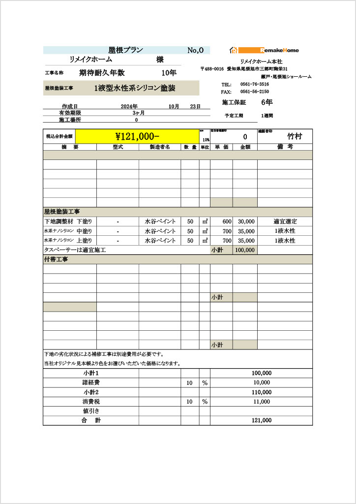 | 遮熱 | 13年 | 10年 | 16.8万円 |