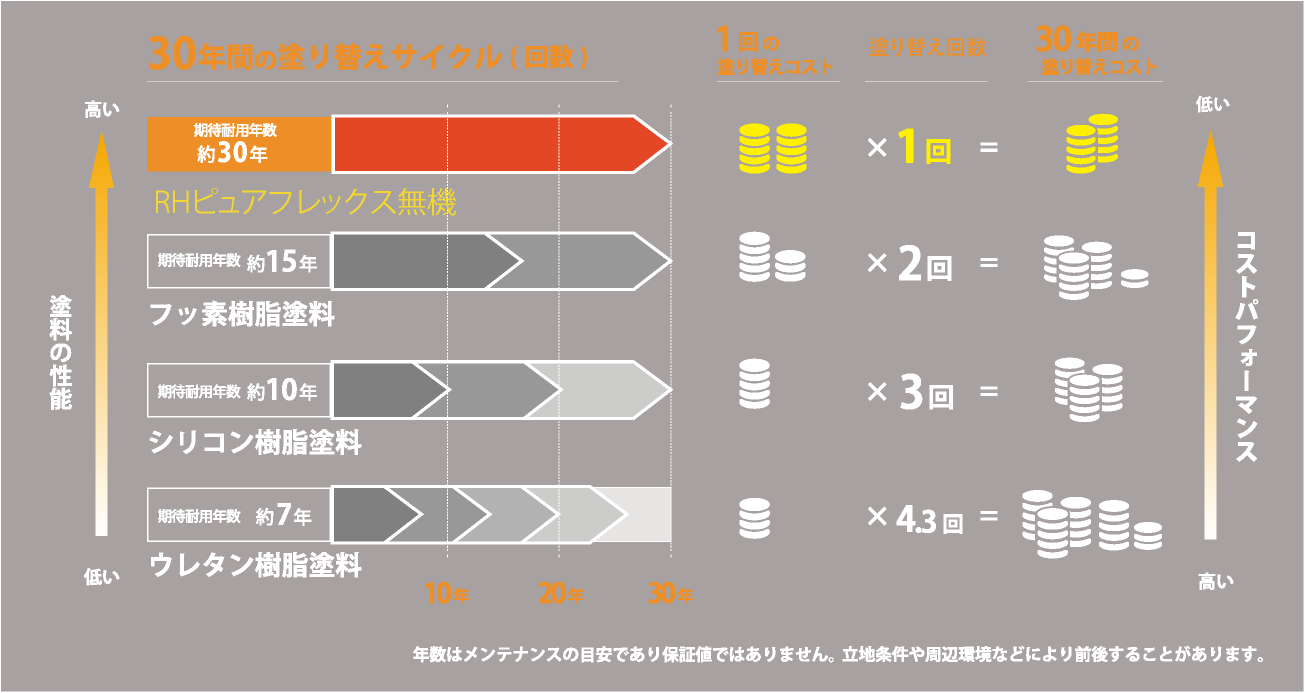 耐用年数が短くても、1 回の塗替えコストが安いほうがいい! と安易に考えてしまうことは危険です。