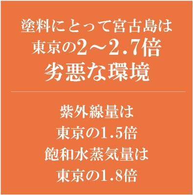 紫外線が強烈な宮古島にて、第三者機関による10年間の屋外暴露試験において長期間耐候性を維持することが実証されています。