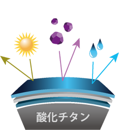 ガラスと同様の珪石(英石)を原料とした、紫外線に強い合成樹脂を採用。厚い無機バリア層で酸化チタンをコーティングすることで、汚れ・劣化の原因となるラジカルを弾き返し、美観を長期にわたり守ります。