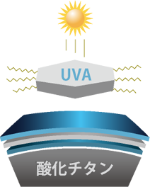 UVA バリアは降り注ぐ紫外線を吸収し、熱などのエネルギーに変換して放出します。天敵であるラジカルが発生する前に、先手を取り徹底的に戦います。四季による環境変化が激しく、外壁劣化の進行が早いと言われる日本の気候でも快適に過ごせるサポートをお約束します。