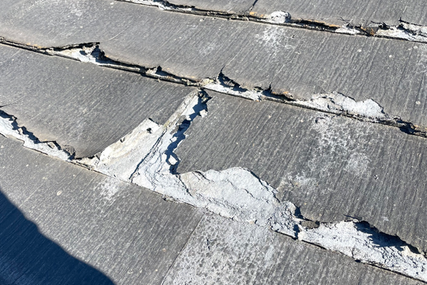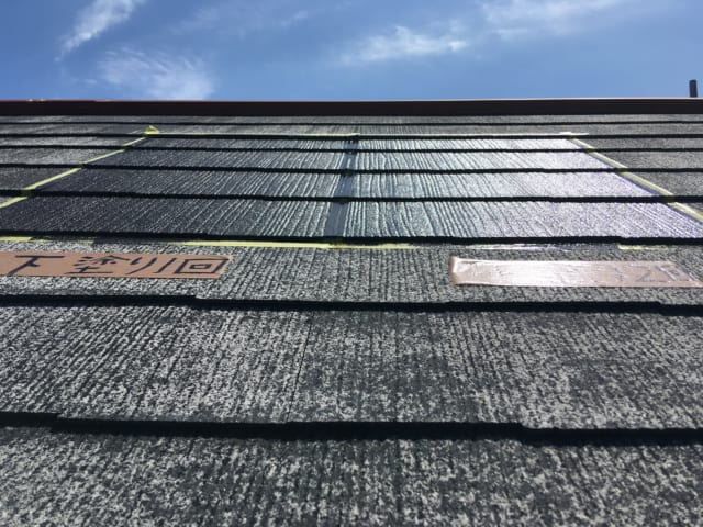 屋根材(スレート)の重なり部分は、新築時に適切な隙間が空いています。隙間を空けることで適切に雨水が流れ、屋根材裏面の通気性も確保されます。 屋根塗装時にこの隙間が塗料で埋まってしまうと 雨水の流れが妨害され、屋根材の裏面に水分が溜まります。 屋根材の裏面に溜まった水分は毛細管現象により、本来濡れてはならない屋根の下地へ浸食。下地の木材が腐ったり雨漏りの原因となります。