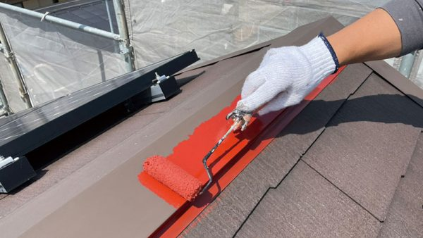 屋根材を塗装する前に鉄部の状態に応じてサビ止めを塗装します。