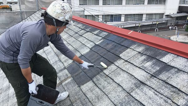 下地調整材は2回~3回塗装します。1回だと上塗り塗料を屋根材が吸い込んでしまい、ツヤが引けた仕上がりになってしまいます。
