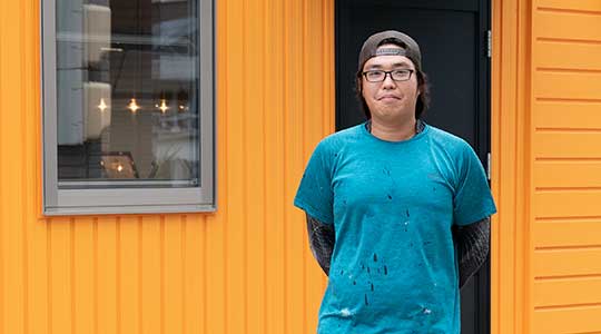 - こんにちは。リメイクホームで板金職人をしています、大野拓真と申します。2020年入社です。仕事で気をつけている点は、「信頼関係」と「責任感」です。その一つの例として、化粧作業をする際、取り付ける前でも取り付けた後でも少しのキズでもあれば取り替え、注意し目を配り対処しています。仕事を自分が仕事をさせてもらえることに感謝し、その対価以上の丁寧な仕事をするように心掛けています。