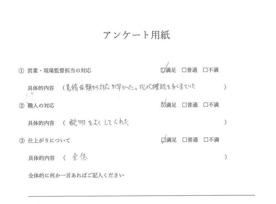 見積依頼から対応が早かった。 現状確認を多く来ていた。