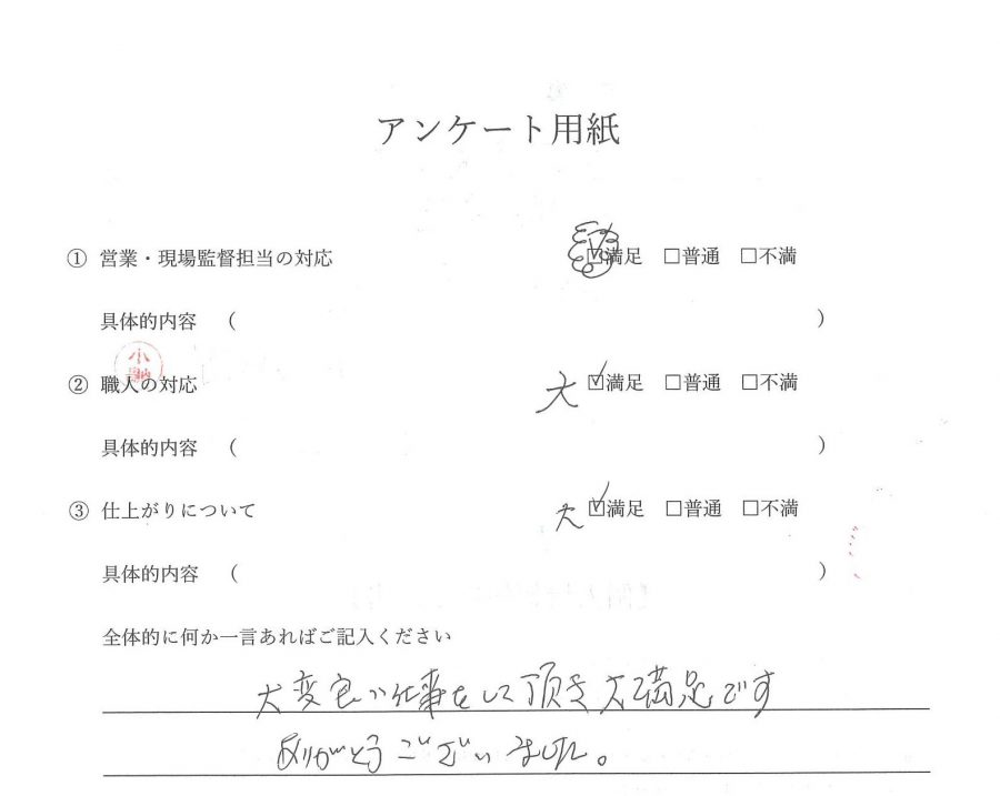お客様から一言 大変良い仕事をして頂き大満足です。ありがとうございました。