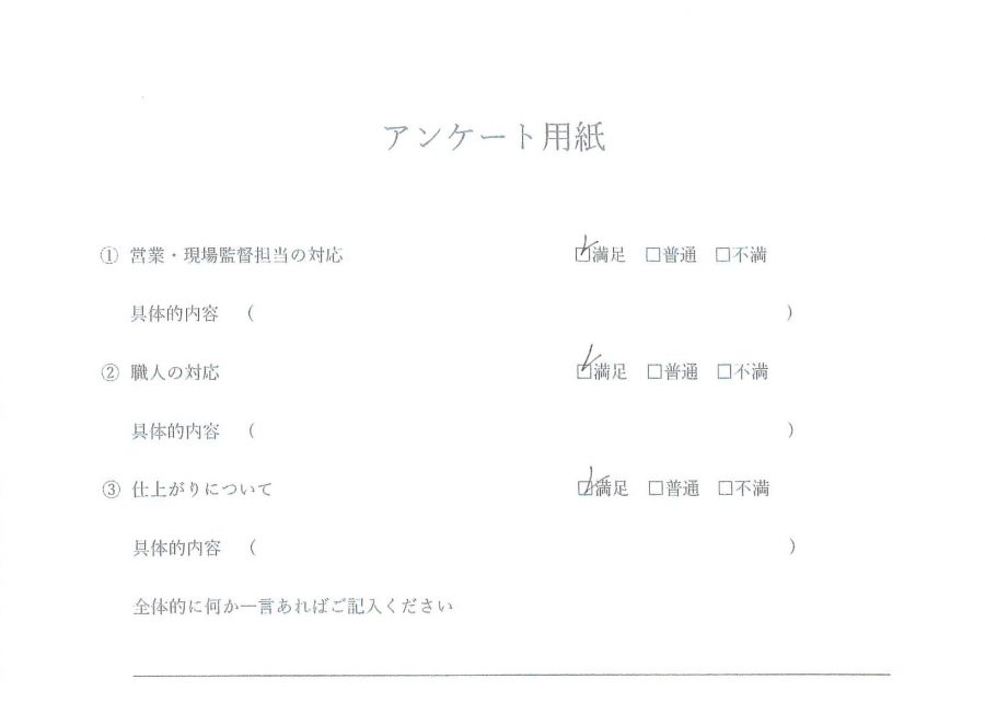 内装工事(ガスコンロ交換工事) 営業・現場担当の対応 満足 職人の対応 満足 仕上がりについて 満足 お客様へ この度は弊社をご利用下さいまして誠に有難うございます。弊社の施工は各職種毎に専属の職人が作業を行い、お客様から、ありがとうを頂けるよう日々仕事に取り組んでおります。せっかく頂きましたお客様とのご縁です。これからも何かお住いの事でお悩み等ございましたらどんな些細なお悩みでも構いませんのでお気軽にお声掛け下さい。スタッフが一丸となってご提案させて頂きます。宜しくお願い致します。