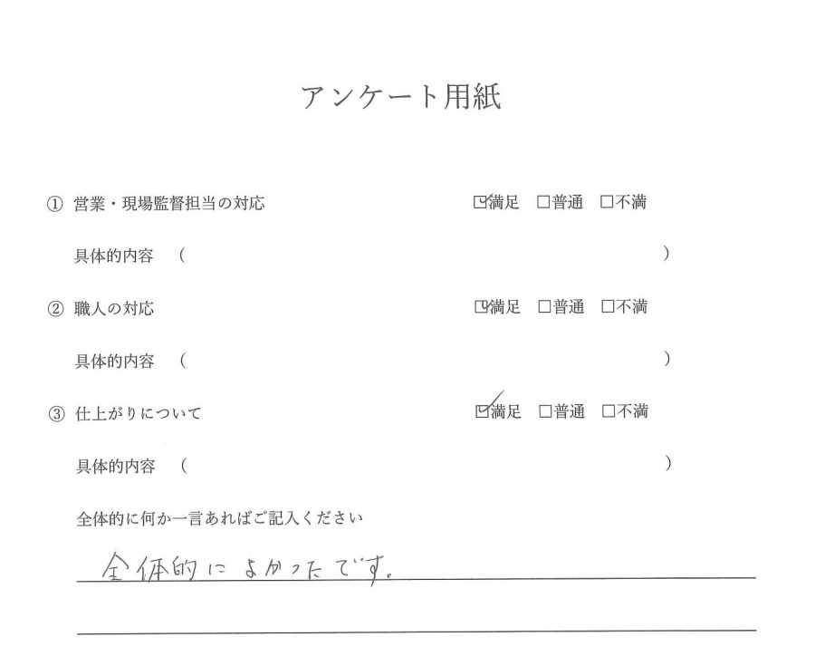 | お客様から一言 | 全体的によかったです。 |