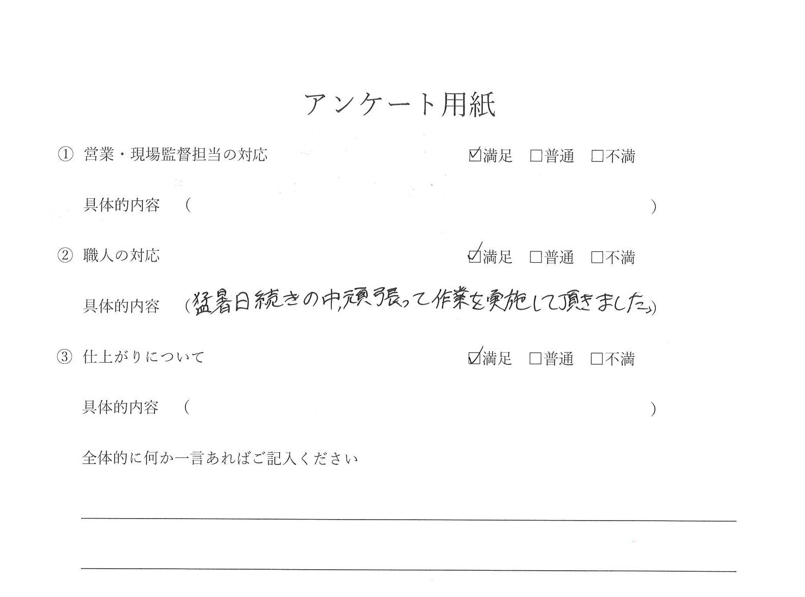 満足 猛暑日続きの中、頑張つて作業を実施して頂きました |