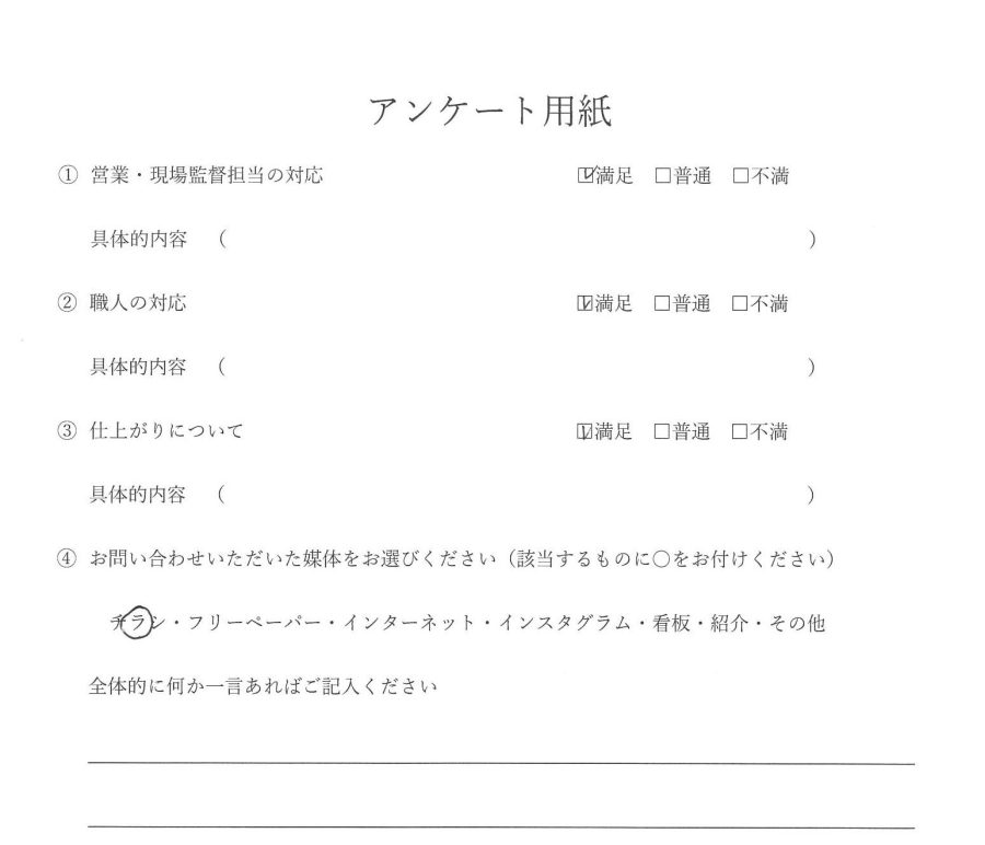 この度、リメイクホームさんにお願いして本当に良かったと思っています。仕上がりはもちろん、営業の方や職人さんの対応も素晴らしく、施工の流れや細かな配慮まで行き届いていました。工事を終えた今、我が家が新しく生まれ変わったようで非常に満足しています。今後また何かあれば、ぜひリメイクホームさんにお願いしたいと思いますし定期的なメンテナンスやアフターケアについても相談したいと考えています。この度は、本当にありがとうございました。